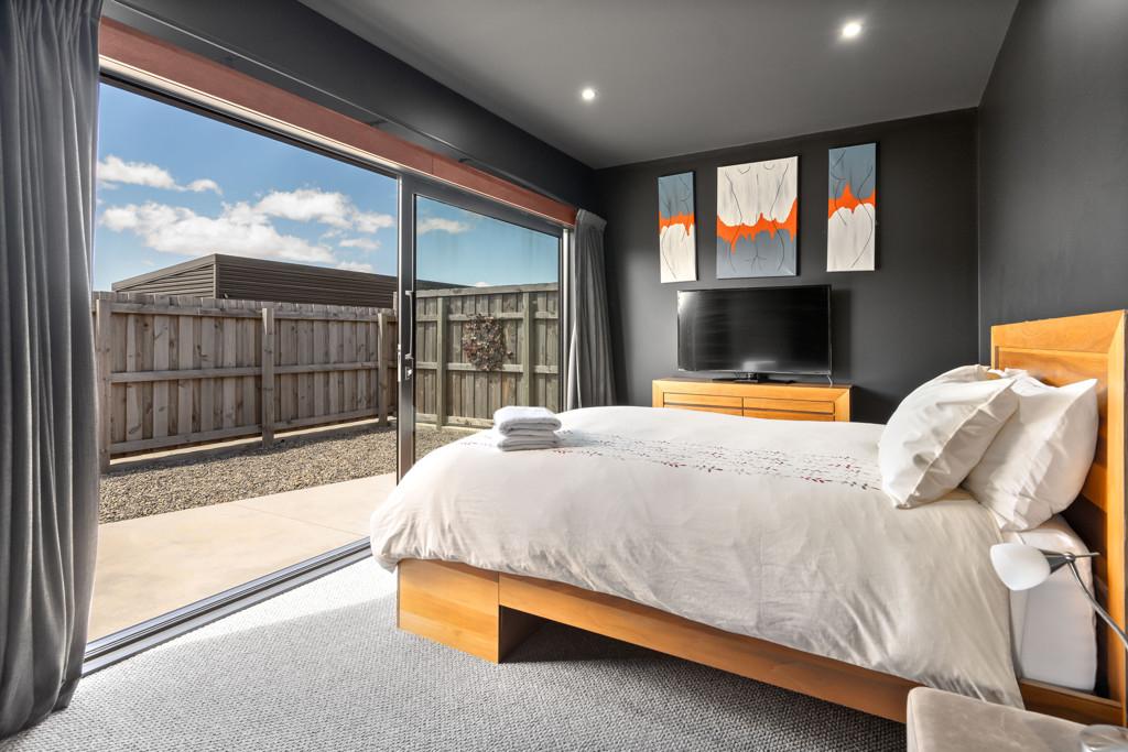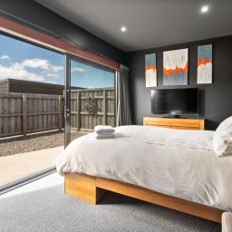 Accommodation includes two generous double bedrooms, each a private retreat with its own patio access, perfect for morning coffees or evening relaxation. The contemporary bathroom features a luxurious soaking tub and underfloor heating, ensuring comfort all year round.