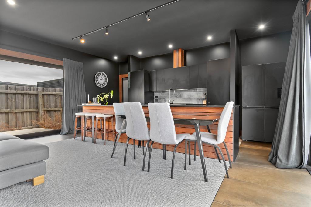 At the centre, the open-plan kitchen, dining, and living zone delivers true wow-factor. Finished in a striking matte black with warm timber accents, this sleek designer kitchen will delight any entertainer - offering both style and functionality for hosting friends and family.