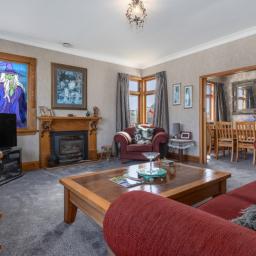Comfort is assured year-round with underfloor, ceiling, and wall insulation, an HRV system, two heat pumps, and a gas fire in the lounge.
