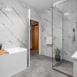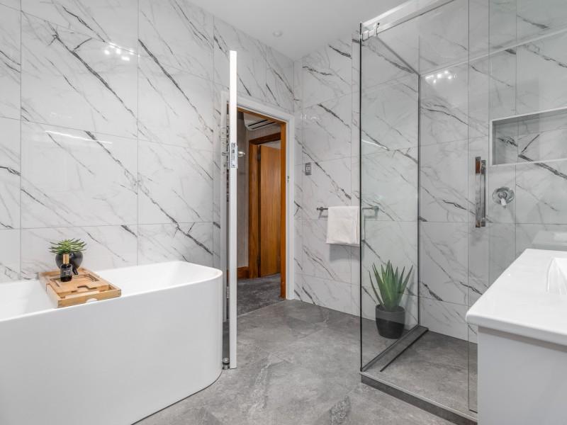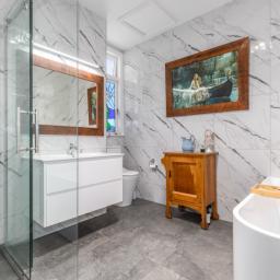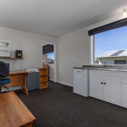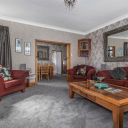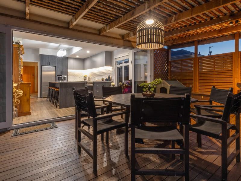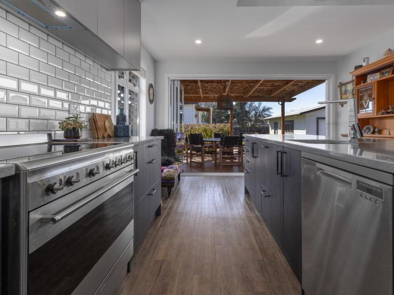 Inside, a separate lounge with inbuilt sliding doors provides a cosy retreat or can be opened up for larger gatherings. The home features three spacious bedrooms, a sleek tiled bathroom with a luxurious soaker bath and shower, plus the bonus of a separate toilet for convenience. Endless hot water is ensured with a gas infinity system.