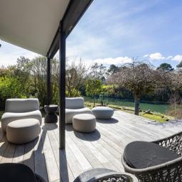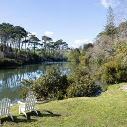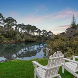 The setting is nothing short of magical. Protected stone ruins remain as a reminder of the site's history, while the original sea wall allows you to fish for snapper or flounder, or even launch a small boat or kayak directly from your own backyard. From most rooms you can watch dolphins at play, birds circling the river, and fish breaking the surface as the tides ebb and flow. Ducks and Pukeko roam freely across the lawn, while a wide new deck provides the perfect vantage point to soak in the views with family and friends. Here, every angle is pretty, every outlook serene.