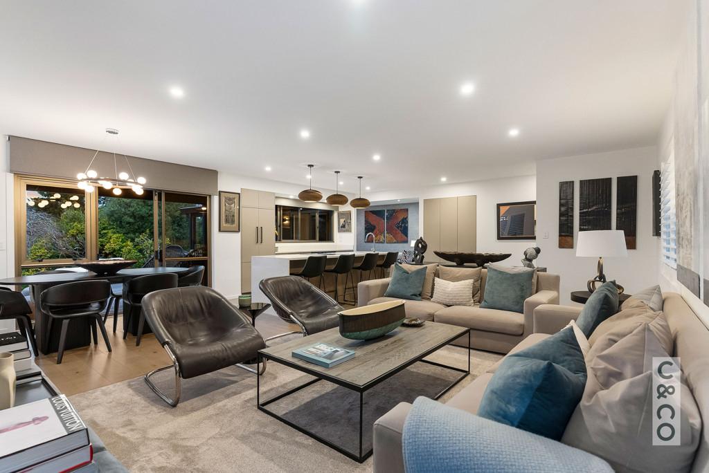 The layout is ideal for modern living, with a second family lounge offering flexibility and retreat. The main suite enjoys its own private wing, complete with a walk-in wardrobe and a sleek ensuite bathroom. Three further bedrooms and a second fully renovated bathroom provide comfort for family or guests, supported by a stylish laundry and excellent storage.