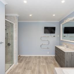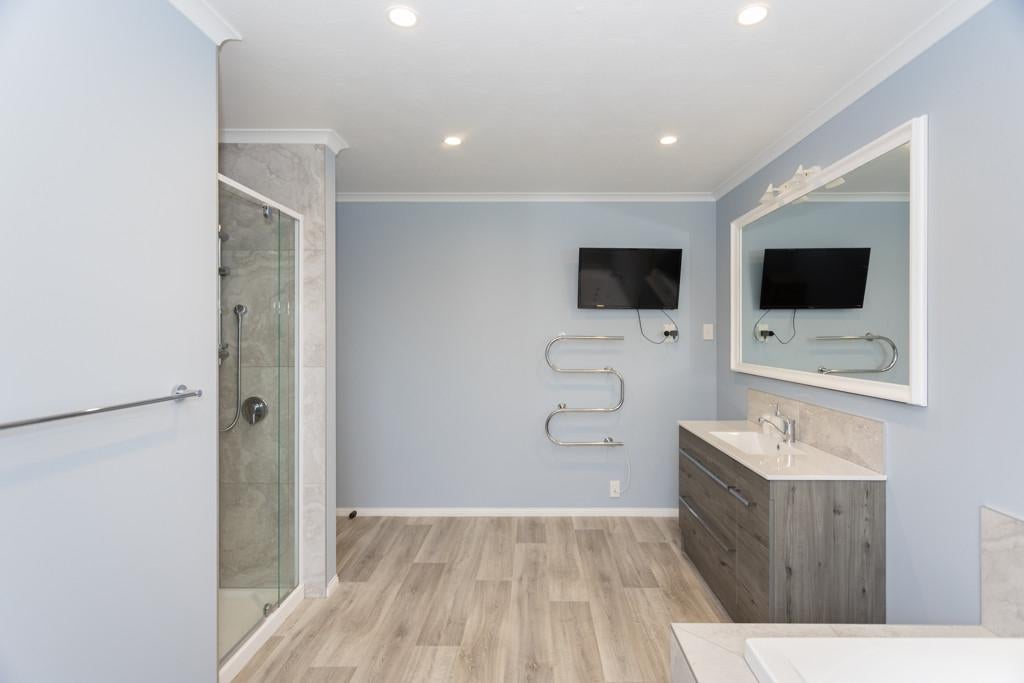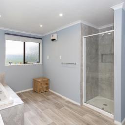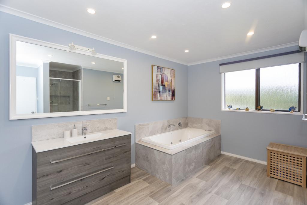 Three super-sized bedrooms and the large, modern family bathroom with spa bath, separate shower and vanity, are all conveniently located on the main floor, along with a separate toilet adjacent to the bathroom and an additional heat pump located in the hallway ensuring warmth in winter and cool air in summer.
