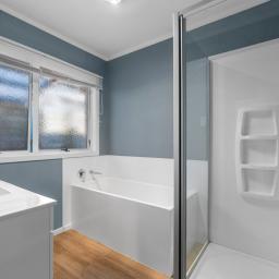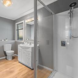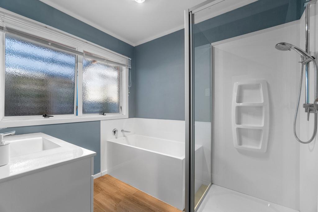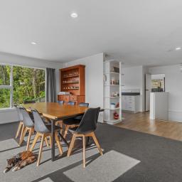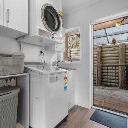 Comfort is ensured year round with ceiling, wall, and floor insulation, a heat pump, air conditioning unit, and a full HRV system promoting a healthy indoor environment. A separate laundry, heated towel rails, and modern light fittings throughout further contribute to the home's overall comfort and convenience.