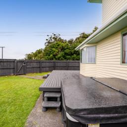 A large shed adds to the appeal, giving you space for hobbies, storage, or a workshop. The section is private and fully fenced with easy indoor/outdoor flow onto the deck, which wraps around to the spa pool. Imagine sitting back in the spa at night, stargazing while listening to the rumble of the sea in the distance.