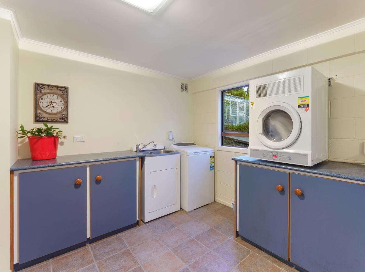 A versatile layout includes a dedicated laundry and utility area with plenty of storage, while the double internal garage extends into a third-bay workshop—fully powered and ideal for tools, toys, or creative pursuits. For the gardener, an on-site bore keeps your flourishing grounds looking their best.