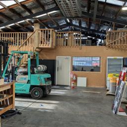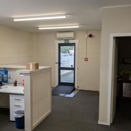 2) 4 Railway Avenue. Offices of 103 m² Warehouse 186 m² (High stud) Mezz 103 m² Storage Total: 392 m² plus 6 car parks. Access and yard are shared with eastern tenant . Amenities: 2 offices and reception - kitchen, M & F toilets plus a shower in the men's wc. Office is nicely carpeted and has 2 heat pumps to be left by last tenant Warehouse is portal framed - 4 metres rising to 5.5 m. Great natural light from north facing windows. A very usable building in a great location.