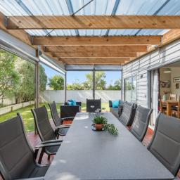 At the heart of the home is the open-plan kitchen, dining and family area, seamlessly connecting to a sun-soaked, covered outdoor entertaining space. With clear roofing and side panels, this extension ensures year-round use - perfect for BBQs, birthday parties, or relaxed weekend brunches.