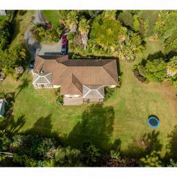 • Covered outdoor entertaining area with expansive lawn space and mature subtropical plantings.