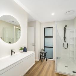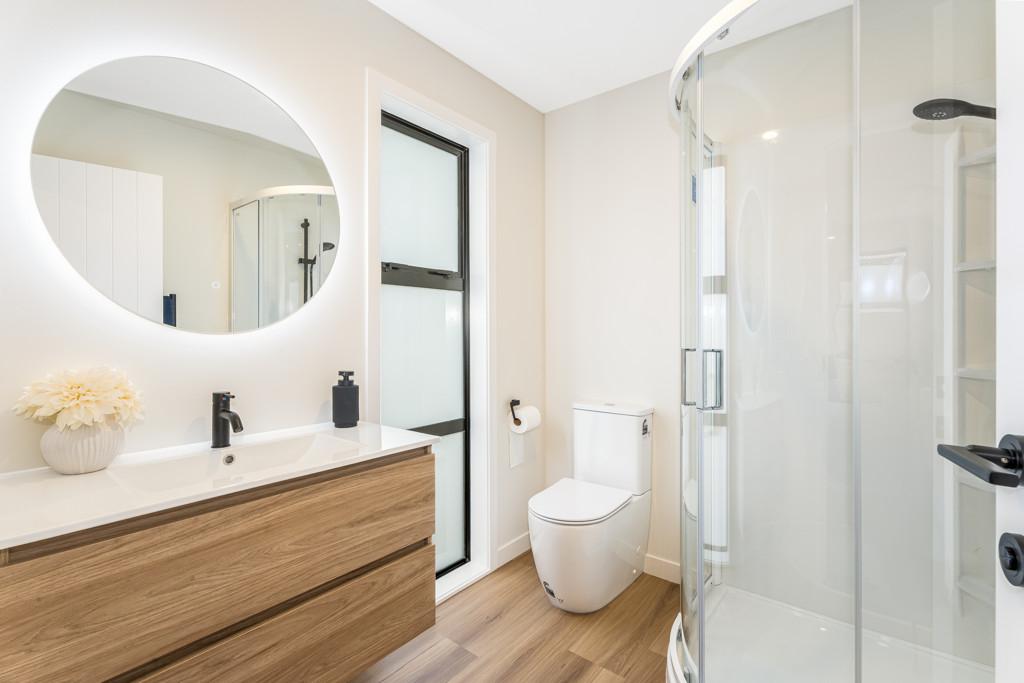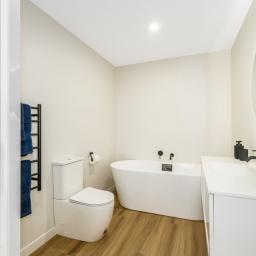 A well-appointed family bathroom featuring a large bath and separate shower, catering to the needs of a busy household. Additional highlights include a study nook, electric hot water system, internal-access garage, and off-street parking. The home is fully insulated and double-glazed, ensuring year-round comfort and energy efficiency.