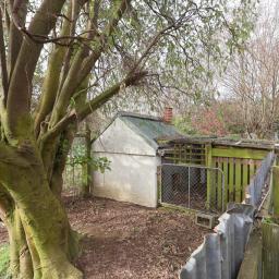 The solid red brick home is privately set in a tree-studded landscape and offers three bedrooms, two North-facing living rooms, a new bathroom, two toilets and excellent heating.