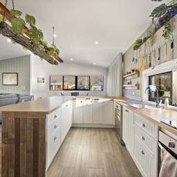 The open-plan living area is the hub of the home, complete with a log burner for cosy winter nights and plenty of space for entertaining or relaxing. There are 4 double bedrooms and a family bathroom, plus separate toilet for added convenience. A cleverly designed 3m x 3m attic provides extra storage, while a versatile cool storage shed offers additional functionality.