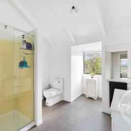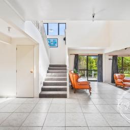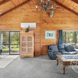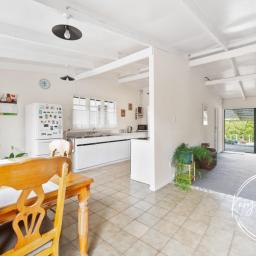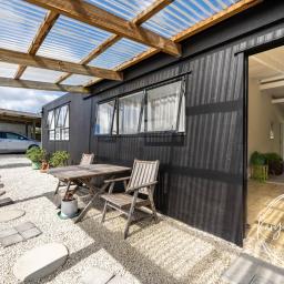 The main residence, with 4+ bedrooms and two bathrooms, combines comfort and character. Its expansive open-plan kitchen, dining, and lounge areas are enhanced by vaulted ceilings, creating a light-filled and welcoming heart of the home.