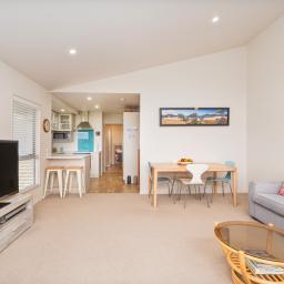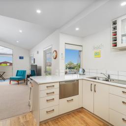 Waiting here for you in a super location, is a 2 bed, 2 bath, 2 level apartment in Oceans Resort. Beautifully refurbished to a high modern standard of presentation. Main living opens out on to the north/east facing deck, perfect spot for your morning coffee in the sun whilst taking in the sea view glimpses. There is a large single garage with internal access, loads of storage and a decent sized garden shed out by the private back patio.