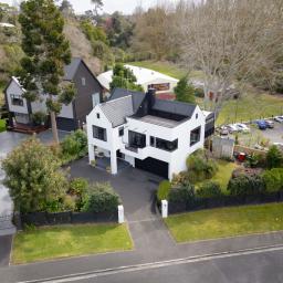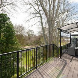 On arrival, the striking facade makes a statement, while established gardens and secure parking add both presence and practicality. Step inside on the ground floor, where a generous bedroom and bathroom provide privacy for guests or extended family. A dedicated study makes working from home easy, while the convenience of the separate laundry space and internal access to garaging, ensures everyday ease. Ascending to the second level, the home opens into a bright and welcoming living hub. Expansive windows bathe the kitchen, dining, and lounge in natural light, while sliding doors connect seamlessly to wide decking amongst the treetops. Whether it's quiet mornings, family meals, or evening entertaining, this level is designed for connection and ease. Two additional bedrooms and a main bathroom, complete with a bath, offer comfort and flexibility. The top floor leads to a unique offering, seldomly seen -a private rooftop deck, elevated above the trees. Here, you can enjoy open skies, sweeping views, and the perfect setting for sunset gatherings or peaceful solitude.