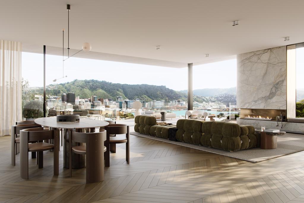 • 171sqm floor area + expansive outdoor living capturing elevated views across the CBD, Mt Victoria, and Wellington Harbour.