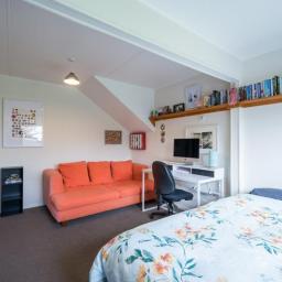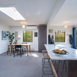Step inside and enjoy the spacious, open plan kitchen, dining and living area – perfect for modern family living. This light filled space flows seamlessly out to a sunny, private entertaining deck, surrounded by a well established garden filled with fruit trees and productive veggie beds. Also on this level is a very generously sized bedroom plus a separate bathroom.