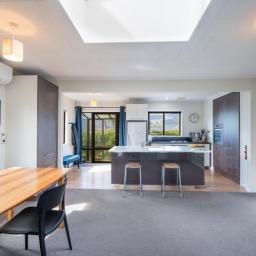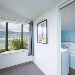 Upstairs, the second bedroom enjoys morning sun and overlooks the estuary plus there is an adjacent office/study nook – ideal for working from home. On the top floor, the master suite is a peaceful retreat, complete with an ensuite bathroom, incredible sun, and sweeping estuary views from every angle.