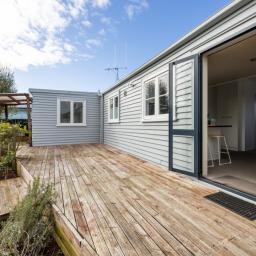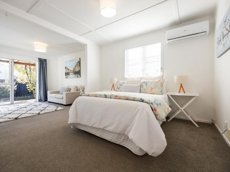 Accommodation is generous, with three oversized bedrooms. One connects directly to the deck and backyard and benefits from a heat pump. The bathroom includes a shower and toilet, with scope to update in the future.