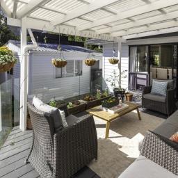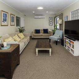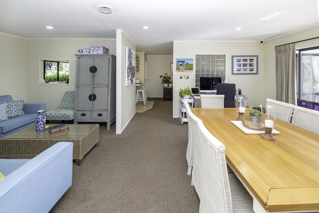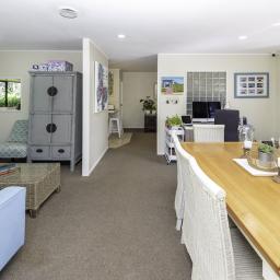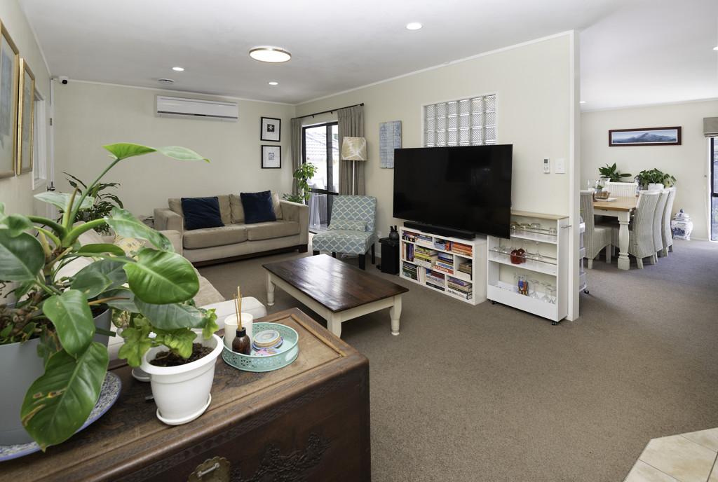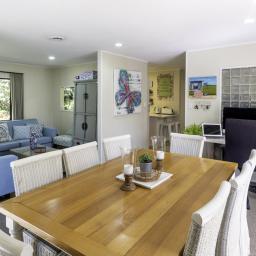 The open-plan dining and living areas flow seamlessly to the sunny north-facing covered deck, creating a perfect hub for entertaining, BBQs, family gatherings or quiet afternoons together. A second lounge provides additional space for hobbies, movies or relaxing in peace.
