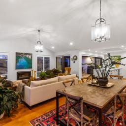 Set proudly on a prime corner section, the home enjoys all-day sunshine, abundant natural light, privacy and superb off-street parking. Lush tropical plantings frame the entrance with undeniable wow-factor, immediately setting the tone for the stylish living within. The layout is both practical and luxurious—seamlessly blending relaxed everyday comfort with generous spaces for entertaining family and friends.