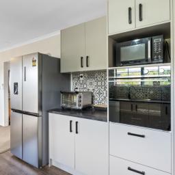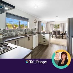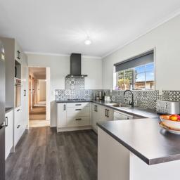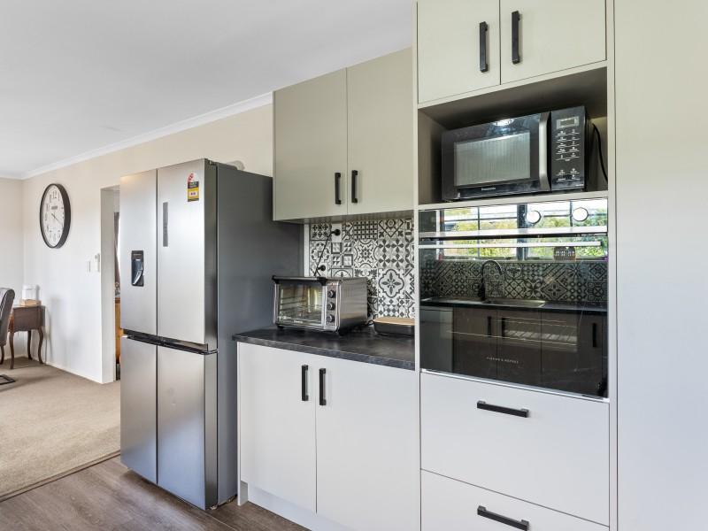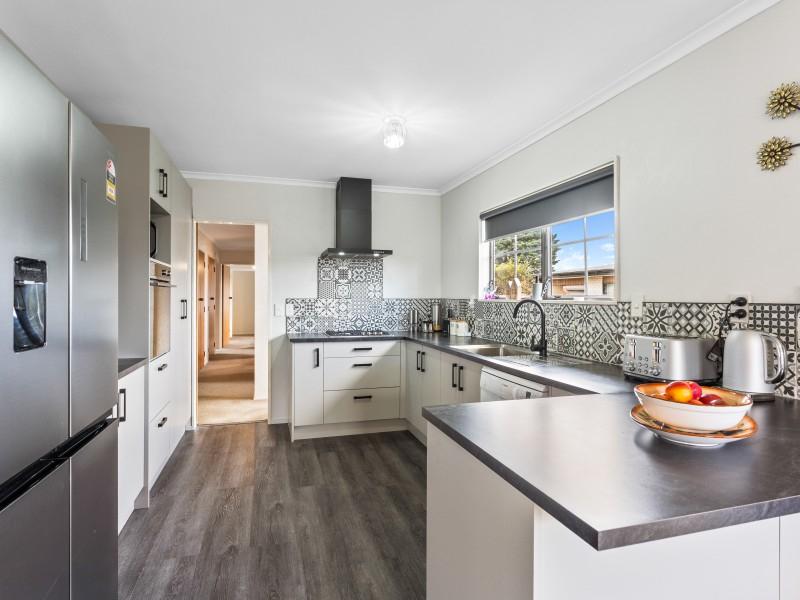 Step into this beautifully presented 1980s home, set on a fully fenced 660m2 section and designed for easy living. The roof has been freshly painted, and inside you will love the brand-new kitchen with quality appliances including a sleek gas cooktop and feature boho tiles. The open plan kitchen and dining connect seamlessly to a generous sized lounge, where a wood burner and heat transfer system keep the whole home cosy in Winter months.