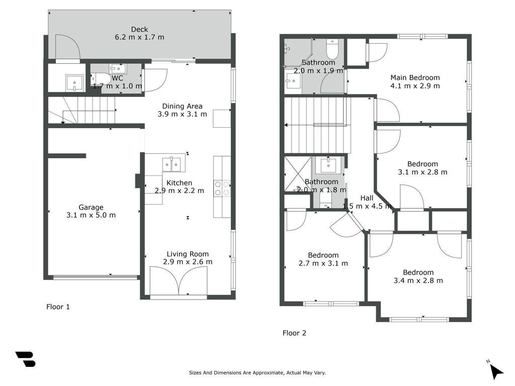 • Two bathrooms (incl ensuite) + a separate toilet downstairs