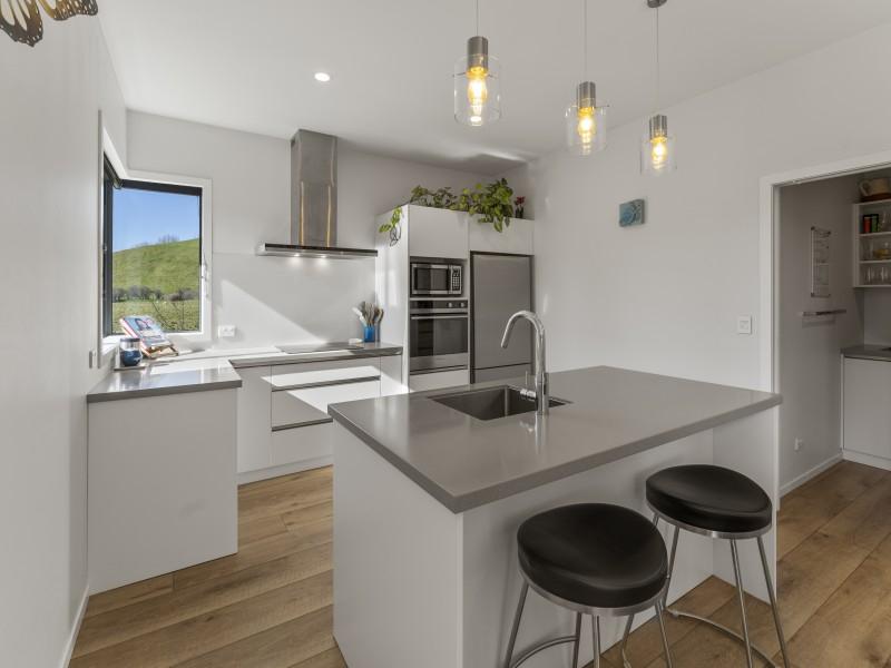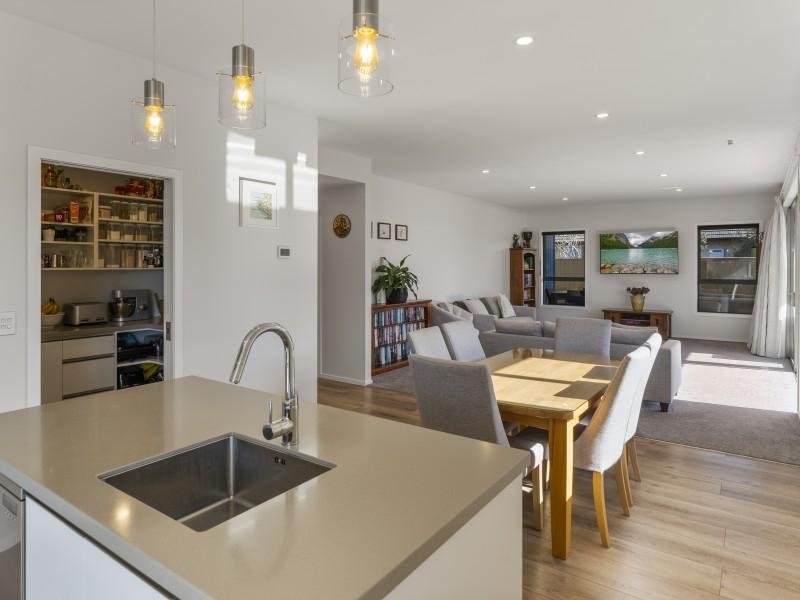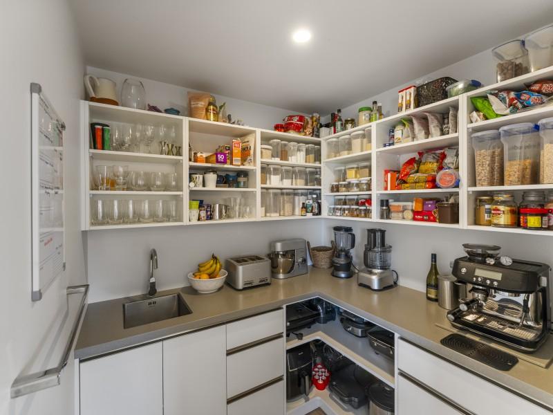At the heart of the property is a modern kitchen designed to impress. Solid benchtops combine durability with style, while the walk-in pantry is generously sized – perfect for keeping everything organised and out of sight.