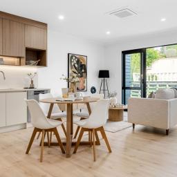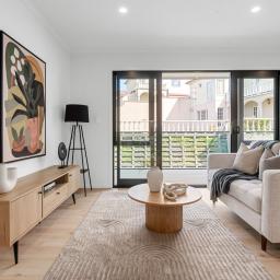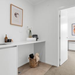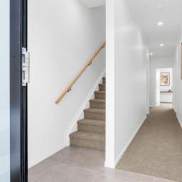Upstairs, sun-filled open-plan living takes centre stage. The designer kitchen impresses with full-height cabinetry, engineered stone benchtops, and quality European appliances. Sliding doors open the space to a sheltered balcony - the ideal spot for your morning coffee or evening unwind. The master suite completes this level, featuring a walk-in robe and a beautifully tiled ensuite for a touch of retreat.