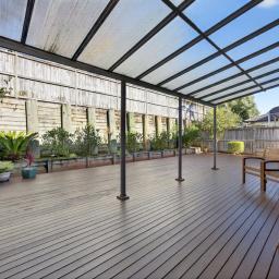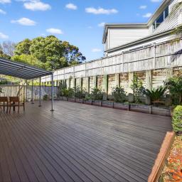 - Sunny, low-maintenance outdoor area with deck - great for gatherings, BBQs, and children's play.