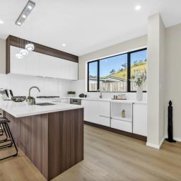 At the heart of the home, the stunning designer kitchen is both highly functional and a true statement piece. It seamlessly connects with the open plan living and dining areas, creating the perfect hub for family life and effortless entertaining. From here, enjoy a seamless flow to the private outdoor entertaining area, ideal for gatherings or quiet evenings.