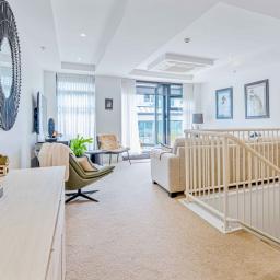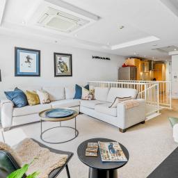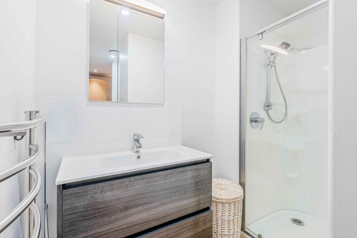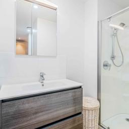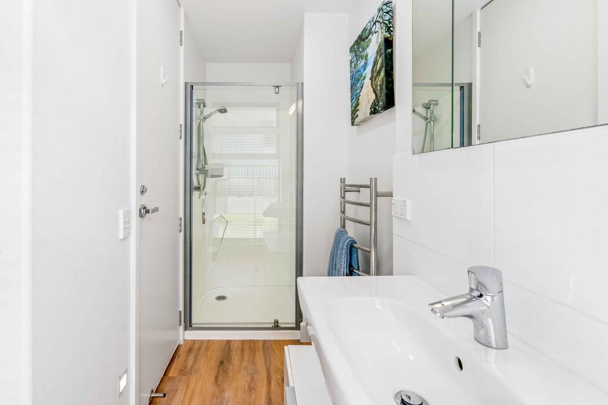 With two generous bedrooms - one on each level both supported by their own bathrooms, the layout offers space, privacy, and flexibility. The ground floor bedroom opens directly to a sun-soaked deck, a tranquil spot to savour your morning coffee. Upstairs, the second bedroom pairs with a sleek bathroom, while the galley-style kitchen anchors the open plan living space. From here step out onto a second deck, perfect for alfresco dining or unwinding in the salty breeze.