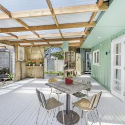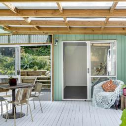 From the lovely covered outdoor entertaining area, you'll find a variety of adjoining spaces - a combined laundry and bathroom, a storage shed, and a separate cabin that forms the second bedroom. There's plenty of space here to add bunks for the kids or extra guests, making it ideal for family holidays or weekend getaways.