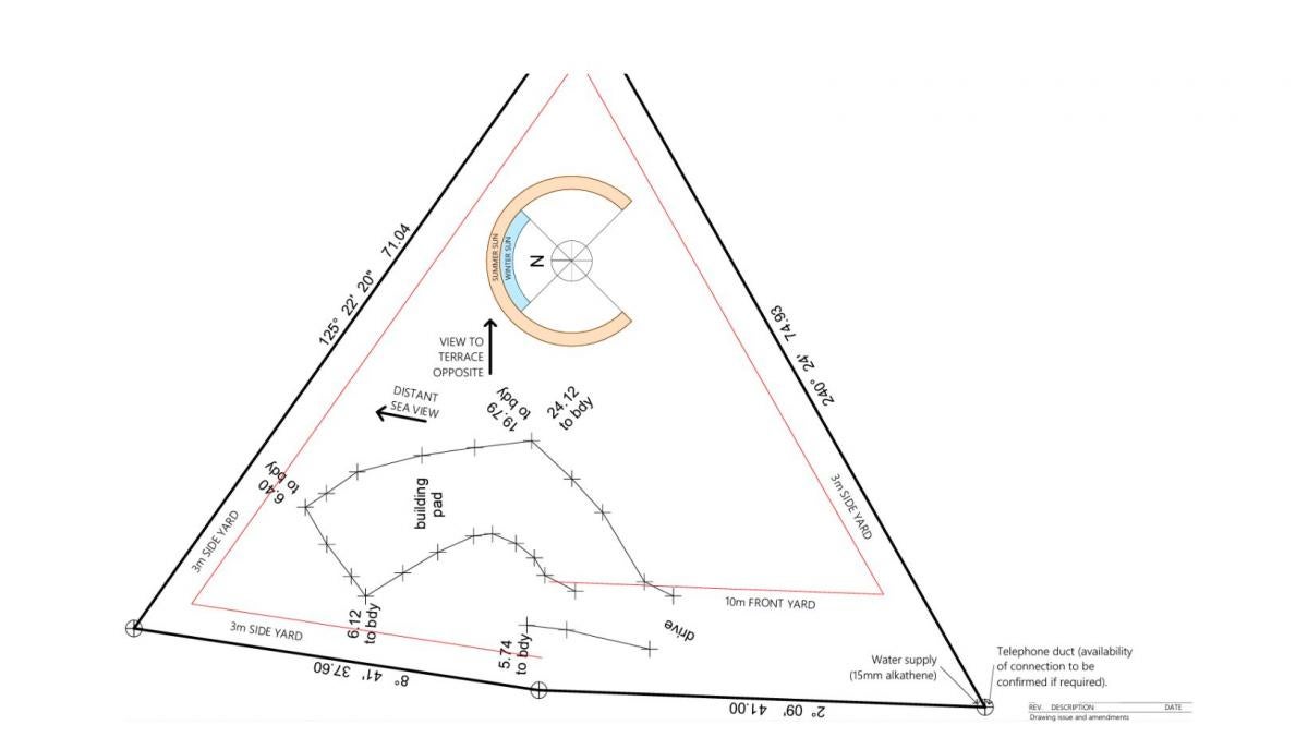 The build site has been cleared, with conceptual drawings and a Geotech report included to streamline the process.