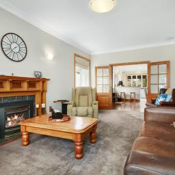 Step inside through a paved entry to a hallway and welcoming living room, complete with plush carpet, gas heating and a statement timber mantel. Control your comfort with a single touch, care of the Home Automation System - TV, lighting, heatpump.