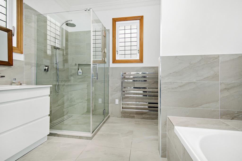A cleverly concealed laundry sits adjacent to the tiled family bathroom with both bath and shower, while outdoors, the offering takes on a unique twist. Above the large double garage and workshop is a separate self contained studio space with its own kitchenette, bathroom and additional storage-perfect for extended family, guests or a creative home office.