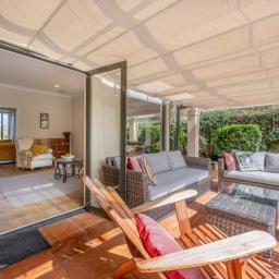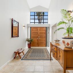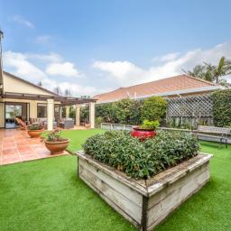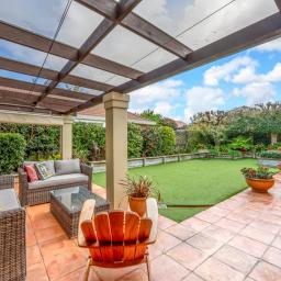 A grand entrance with a wide hallway sets the tone from the moment you step inside, creating a sense of space and refinement that continues throughout the home. The residence features a covered outdoor area and a sun-soaked courtyard - perfect for entertaining or quiet relaxation. The gardens are truly special, offering an oasis-like setting with lush planting and a thriving vegetable garden, ideal for those who enjoy fresh produce and a connection to nature.