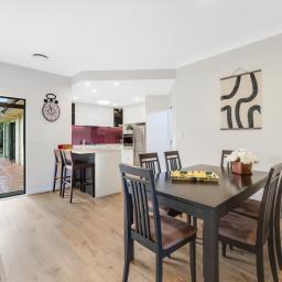 Inside, the modern kitchen is a real highlight, complete with breakfast bar and a solar tube that make it a perfect hub for casual meals and social gatherings. It connects seamlessly to the open-plan dining and family area, while a separate formal lounge with a fireplace creates a warm and inviting atmosphere for cosy winter evenings.