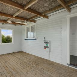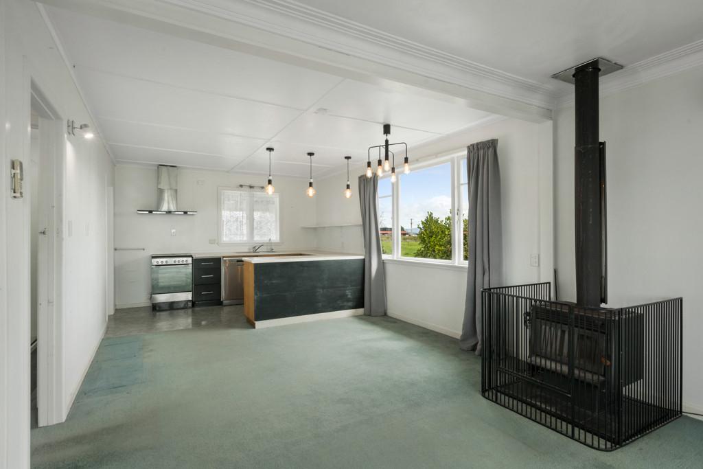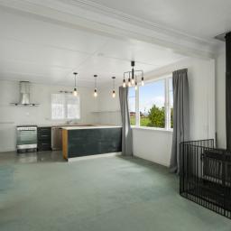 Light-filled living areas with views over the surrounding countryside set a calm tone for this charming two-bedroom home. The open-plan layout connects the living, dining, and kitchen spaces, with easy access to the covered rear deck - perfect for entertaining or relaxing outdoors. The kitchen is functional but ripe and ready for you to transform and modernise to your own vision. A heat pump ensures comfort throughout the year, while the wood burner adds a cosy winter atmosphere.