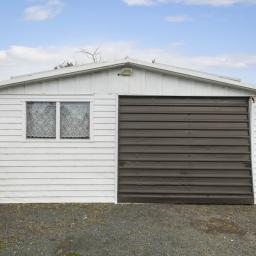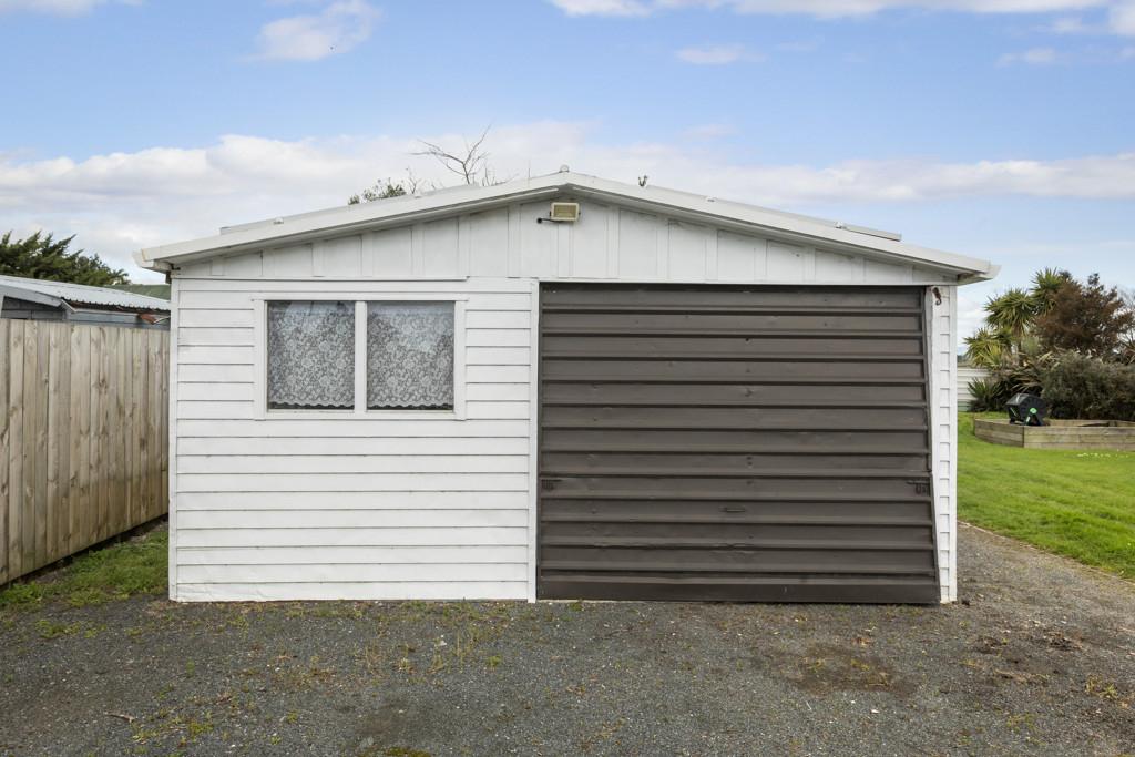 Outbuildings include a freestanding garage with workshop area, an attached shed, and plenty of off-street parking.