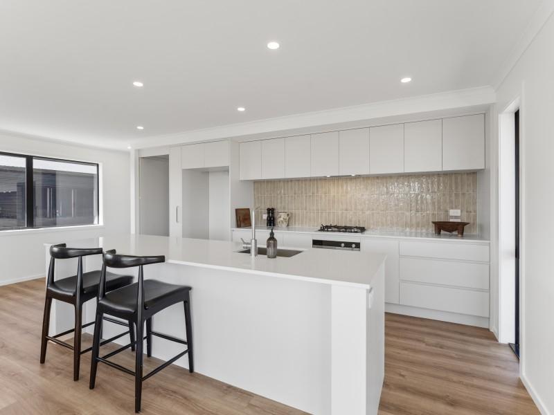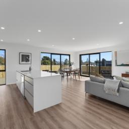 Built for durability, the home features Linea Oblique weatherboards, coastal-rated steel roofing and spouting, and double-glazed joinery with thermal spacers. Elevated positioning ensures light-filled interiors, with future plantings enhancing privacy. A Master Build Guarantee provides peace of mind for years to come.