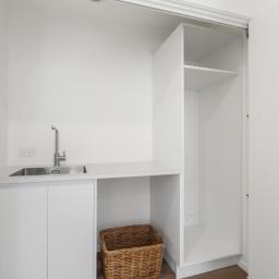 Three bedrooms provide flexibility, with the master offering a walk-in wardrobe and tiled ensuite. Altogether, the home delivers 2.5 bathrooms, including a family bathroom and separate toilet. Bathrooms feature wall-hung vanities, tiled showers, back-to-wall toilets, and heated towel rails, while the laundry adds built-in cabinetry and stainless steel sink.