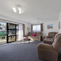 The thoughtfully updated interior features modern bathrooms, a refreshed kitchen, and brand-new carpet throughout. The sunny, open-plan living area flows seamlessly to a covered outdoor deck-ideal for year-round entertaining or relaxing in the afternoon sun.