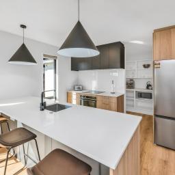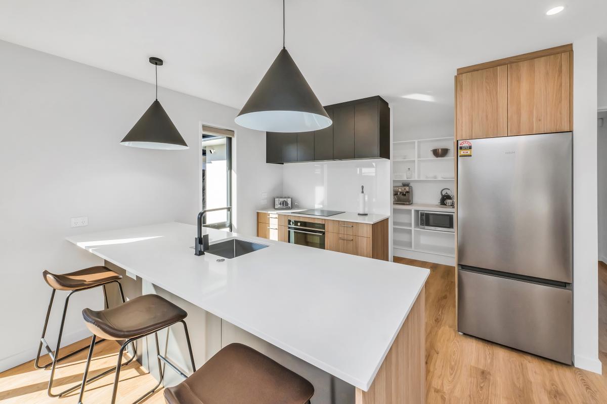 The heart of this home is the stunning kitchen, boasting engineered stone benchtop to kitchen, a breakfast bar, and a full walk-in scullery equipped with a sink and Samsung appliances.