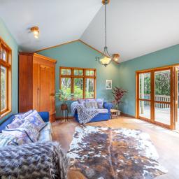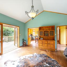 This amazing crafted home is full of exotic timbers and lovely features. The home is set amongst 1 ha (2.4 acres) approximately of tranquil gardens, native bush, exotics and established trees. This is certainly an oasis for those seeking a quiet, private and sheltered position.