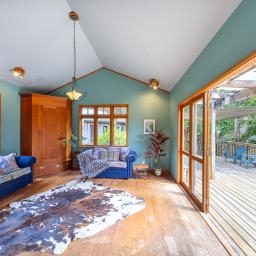 Next to the main house is a self contained cottage with open plan living, 1 bedroom and a bathroom. The is a perfect area for family, extended family or guests.