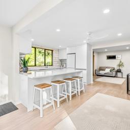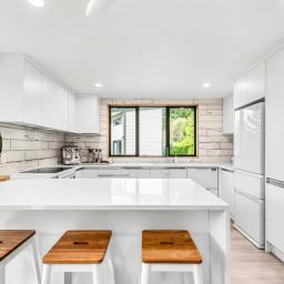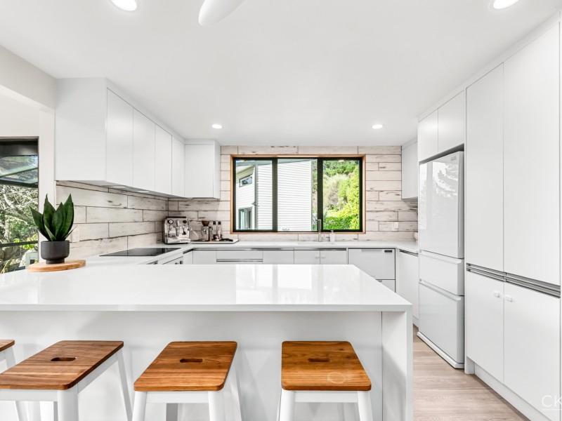 Inside the main home, comfort is guaranteed year-round thanks to a heat pump, a classic woodburner and underfloor heating. The home itself shines with a gorgeous fully renovated kitchen – bright & crisp – perfect for entertaining and family meals. A sheltered pergola, and alfresco dining areas all enhance everyday living. And with a brand-new roof above, the heavy lifting has been done!