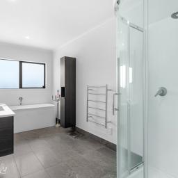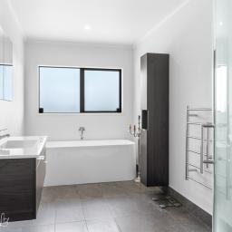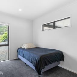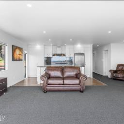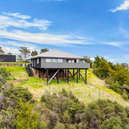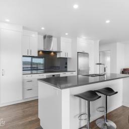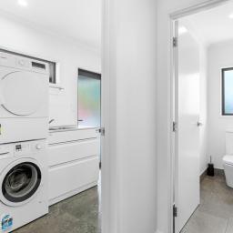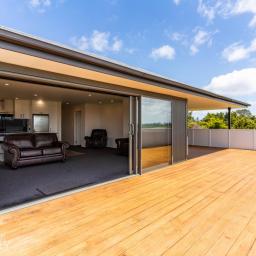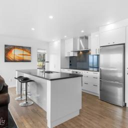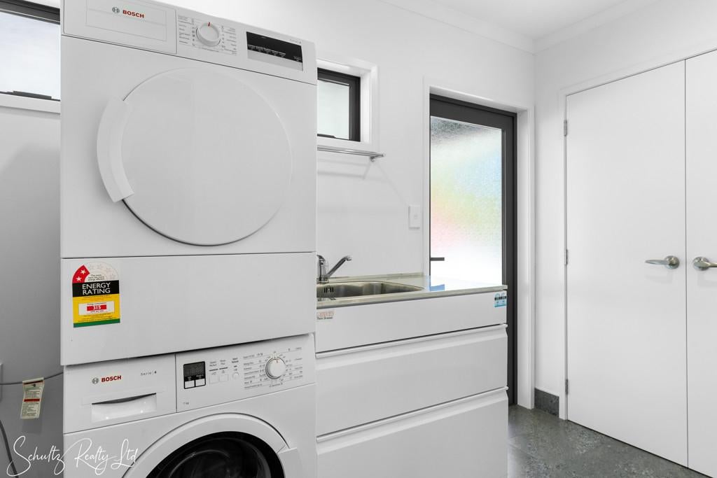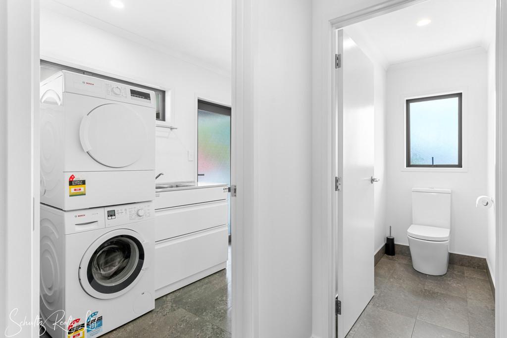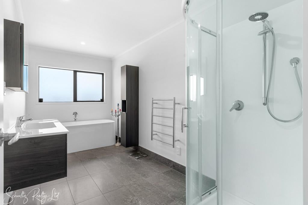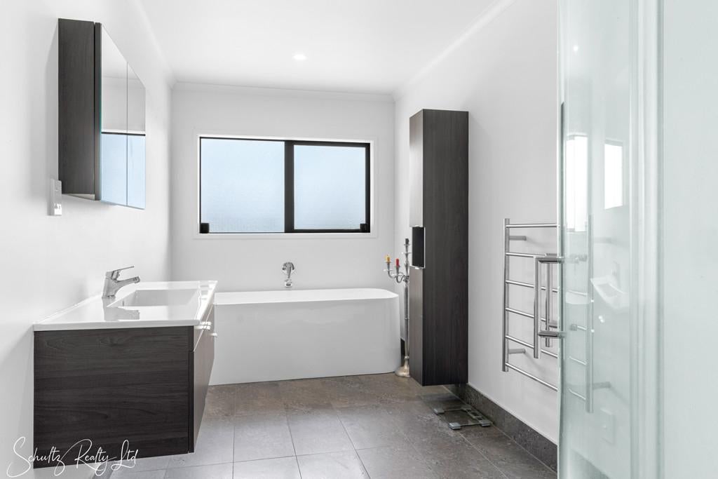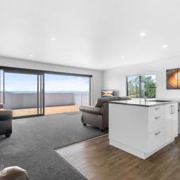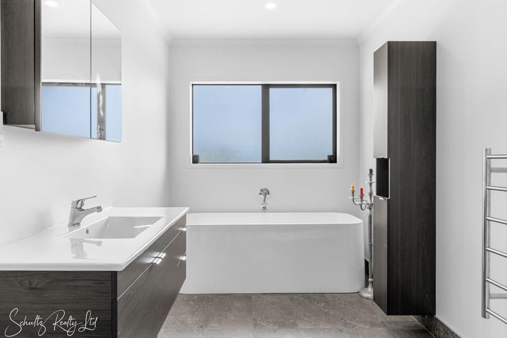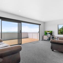 Inside, the home is sleek and stylish, featuring an open-plan kitchen, dining, and living area that flows effortlessly onto an expansive deck-ideal for soaking up the sunshine or entertaining friends and family. The master suite is generously sized with its own deck access, while two further bedrooms provide excellent accommodation. The main bathroom offers both a bath and separate shower, with the toilet and laundry thoughtfully positioned for convenience. Ample storage, a large laundry room, and contemporary finishes complete the interior.
