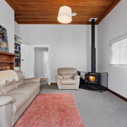 Beyond the front door you'll discover original ceilings and a wide, welcoming hallway that leads you to a separate lounge with a wood burner to ward off the winter chills, a simple open-plan kitchen with adjoining laundry tucked nicely behind cupboard doors. Enjoy family entertainment around the table in the large dining room. This property boasts 3 large bedrooms and a covered-in porch area suitable as a studio, office, or study room.
