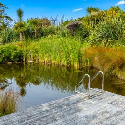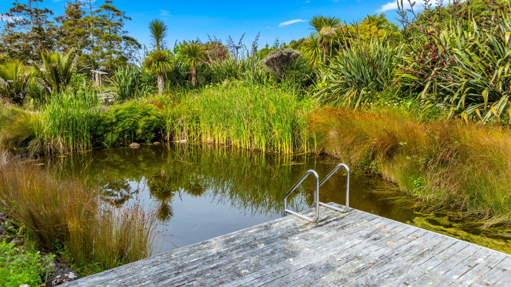 Beyond the home, the property offers a genuine opportunity for a sustainable lifestyle. The grounds feature a mature orchard, natural spring-fed swimming pool, raised garden beds, paddocks for grazing animals, and a beautiful blackwood forest. The original farm bore is shared with the neighbourhood. Enjoy the peaceful rhythms of rural life, just moments from the sea. You'll appreciate some views of the ocean and the shared access to the end of Pakiri Beach, just further down the road, giving you a path to the sea and surf.